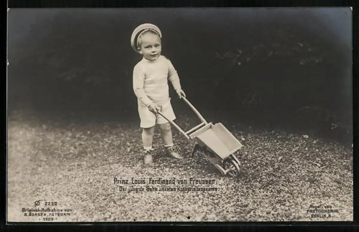 AK Prinz Louis Ferdinand von Preussen mit einer Schubkarre