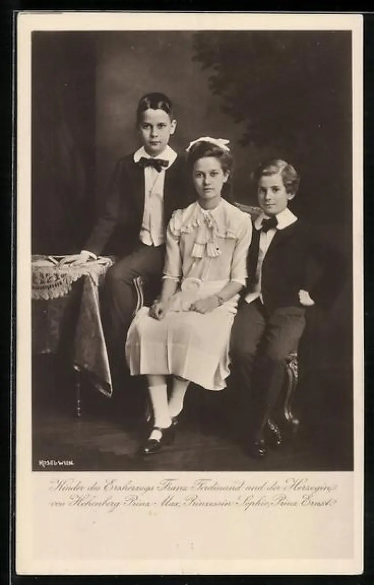 AK Prinz Max, Prinzessin Sophie und Prinz Ernst, Die Kinder des Erzherzogs Franz Ferdinand