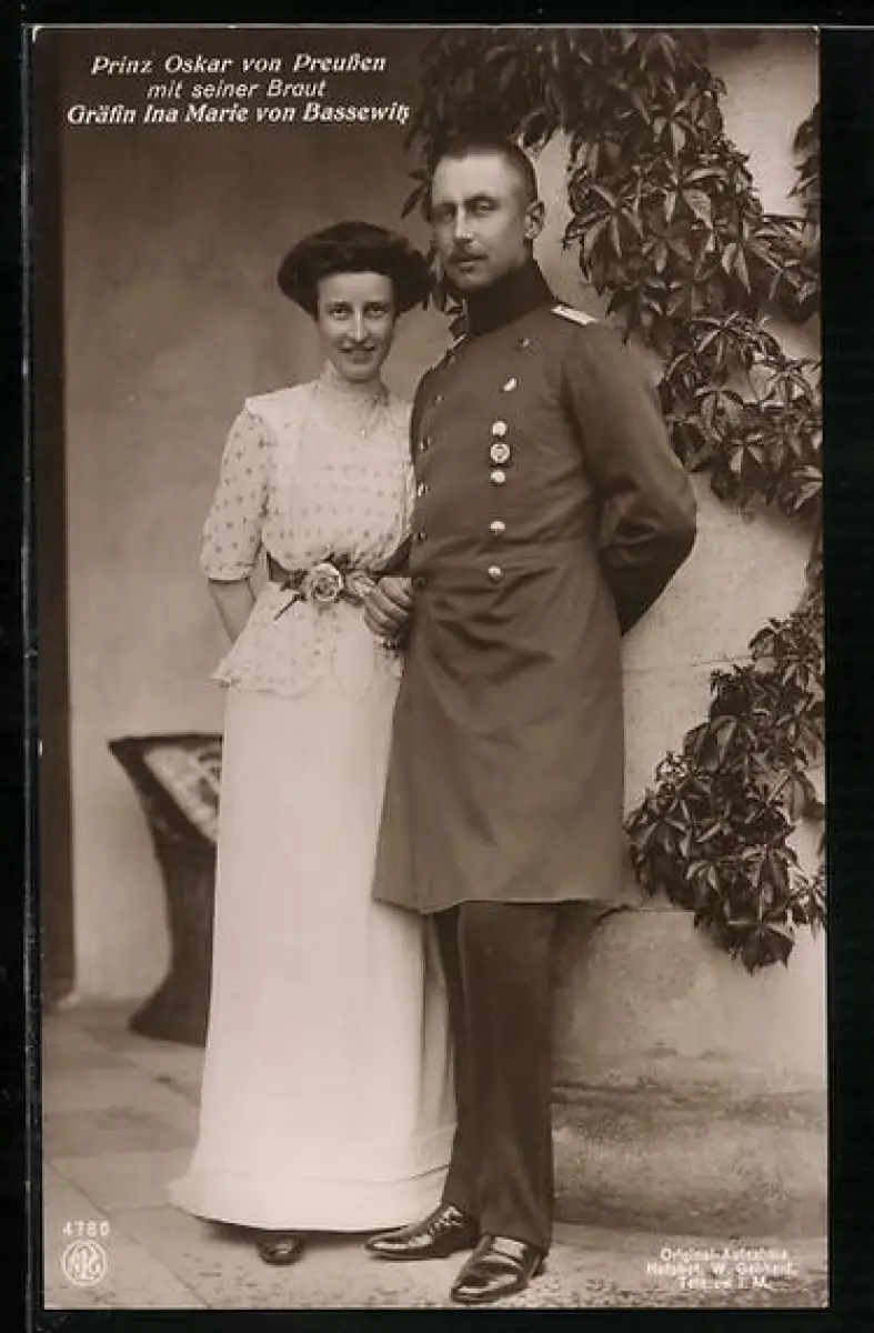 AK Prinz Oskar von Preussen mit seiner Braut Gräfin Ina Marie von Bassewitz