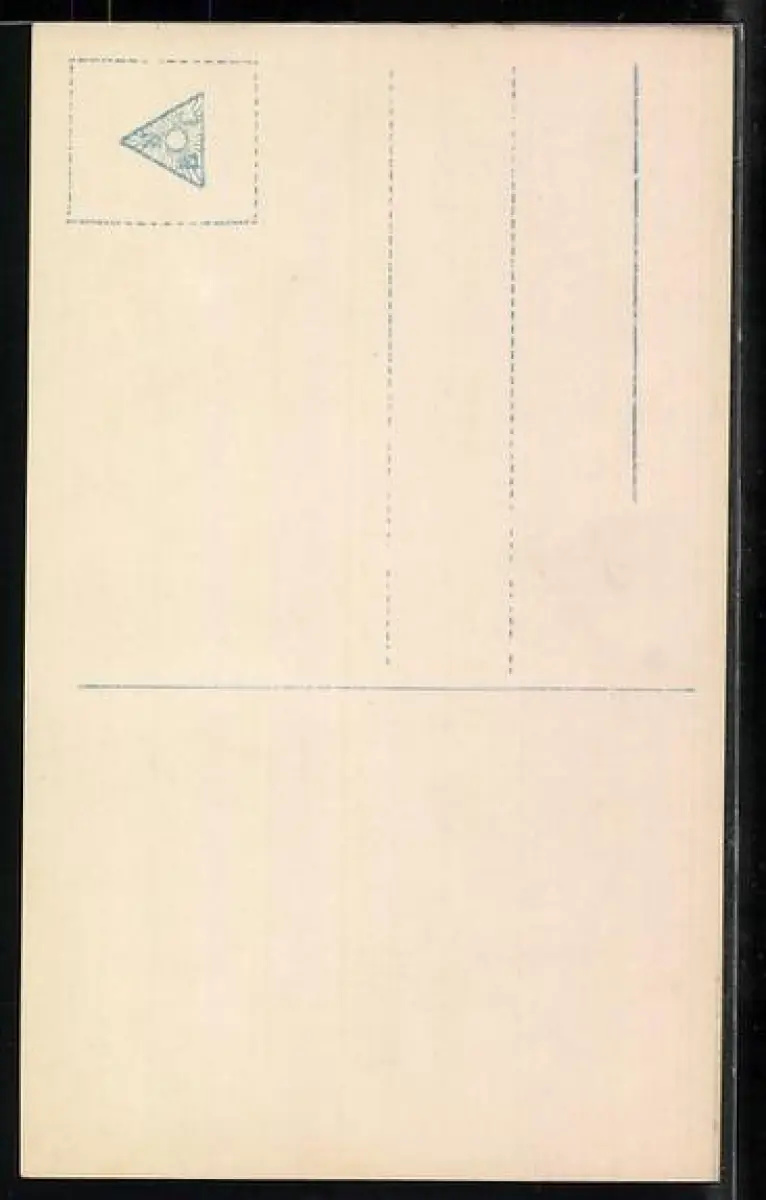 Personenbezogene Daten auf der Rückseite der Karte wurden durch blauen Textmarker unkenntlich gemacht. Die blauen Stellen sind auf die Vorderseite durchgeweicht und wirken sich negativ auf das Postkartenfoto aus