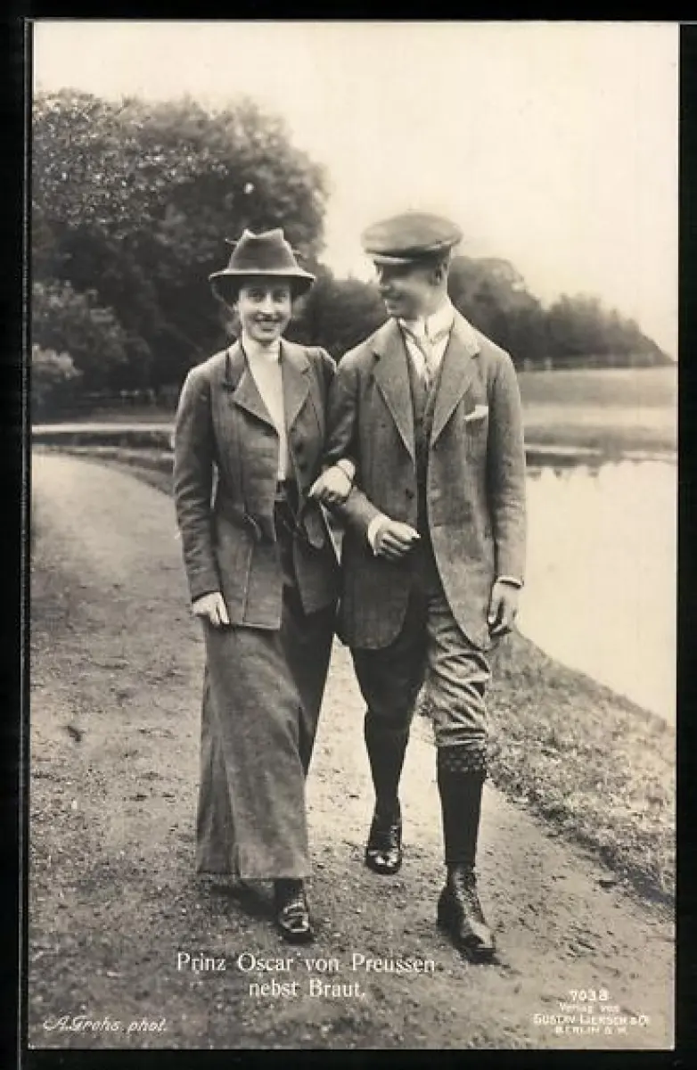 AK Prinz Oskar von Preussen nebst Braut während eines Spaziergangs