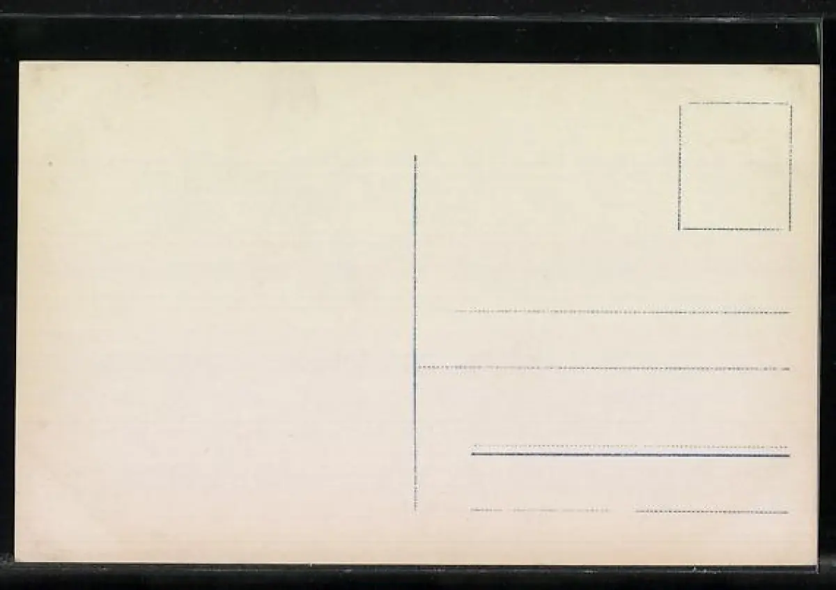 Personenbezogene Daten auf der Rückseite der Karte wurden durch blauen Textmarker unkenntlich gemacht. Die blauen Stellen sind auf die Vorderseite durchgeweicht und wirken sich negativ auf das Postkartenfoto aus