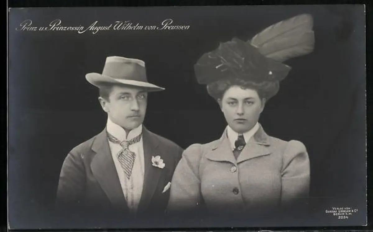 AK Prinz u. Prinzessin August Wilhelm von Preussen, Portrait in eleganter Kleidung