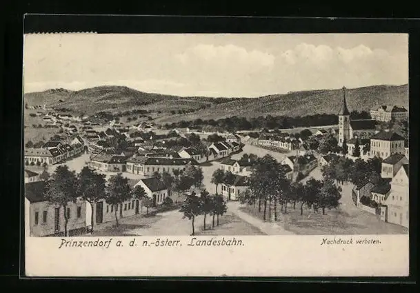 AK Prinzendorf a. d. n.-österr. Landesbahn, Teilansicht mit Kirche