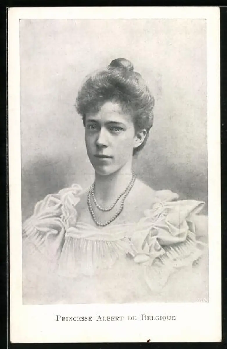 AK Prinzessin Albert von Belgien mit Perlenkette und weissem Kleid