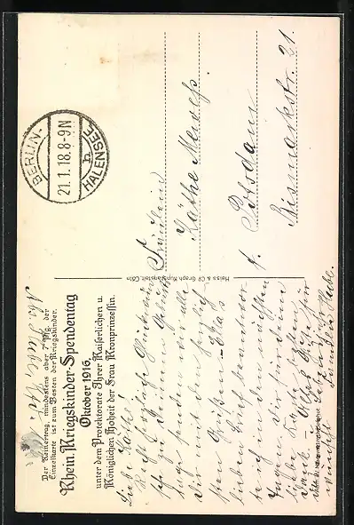 alte Ansichtskarte, gelaufen 1918, Briefmarke entfernt, rückseitig Oberflächenschaden, guter Zustand