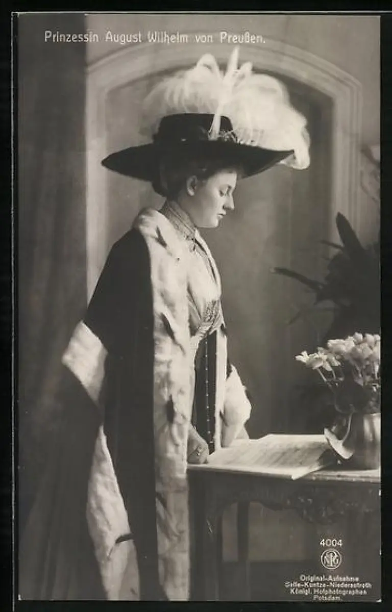 AK Prinzessin August Wilhelm elegant gekleidet an einem Tisch stehend