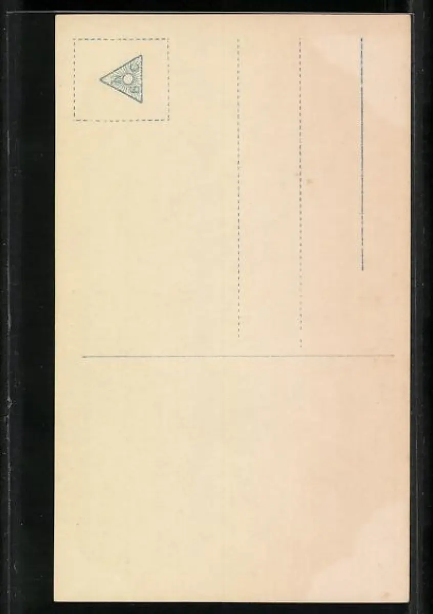 Personenbezogene Daten auf der Rückseite der Karte wurden durch blauen Textmarker unkenntlich gemacht. Die blauen Stellen sind auf die Vorderseite durchgeweicht und wirken sich negativ auf das Postkartenfoto aus
