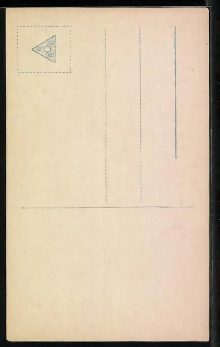 Personenbezogene Daten auf der Rückseite der Karte wurden durch blauen Textmarker unkenntlich gemacht. Die blauen Stellen sind auf die Vorderseite durchgeweicht und wirken sich negativ auf das Postkartenfoto aus