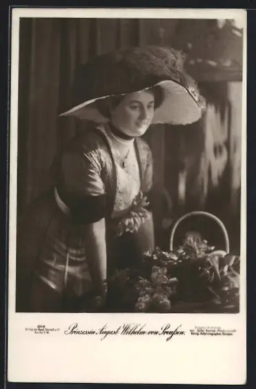 AK Prinzessin August Wilhelm von Preussen, lächelnd mit Federhut