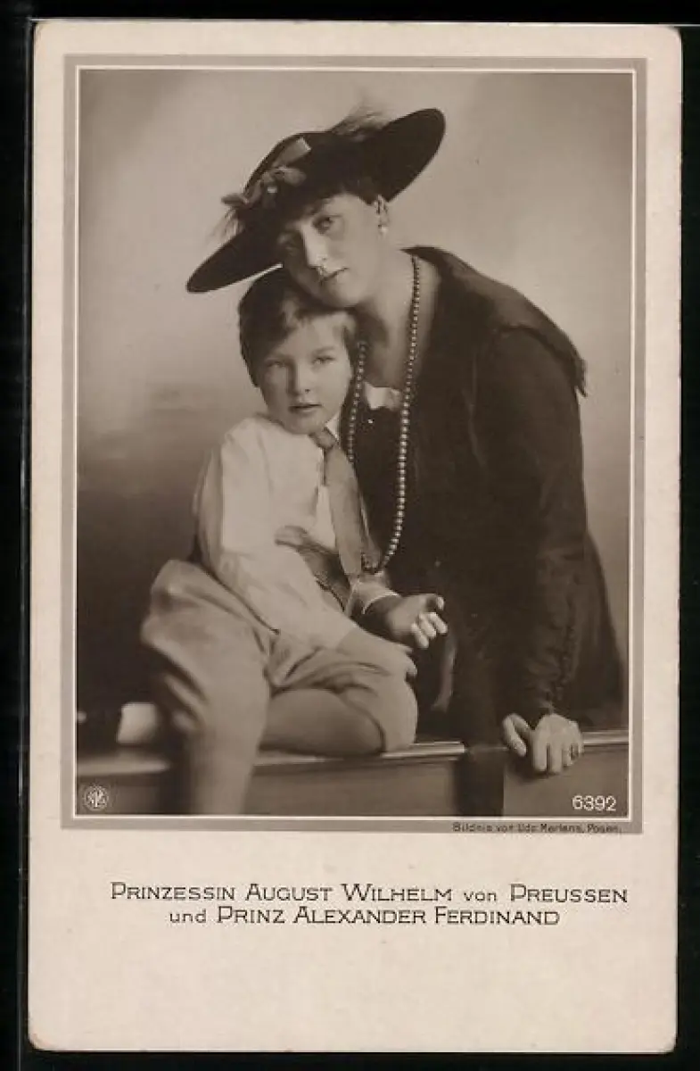 AK Prinzessin August Wilhelm von Preussen mit Hut und perlenkette mit ihrem Sohn Prinz Alexander Ferdinand