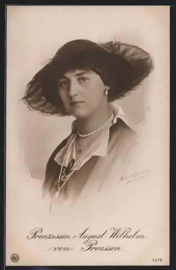 AK Prinzessin August Wilhelm von Preussen mit Tüll-Hut und Perlenketten