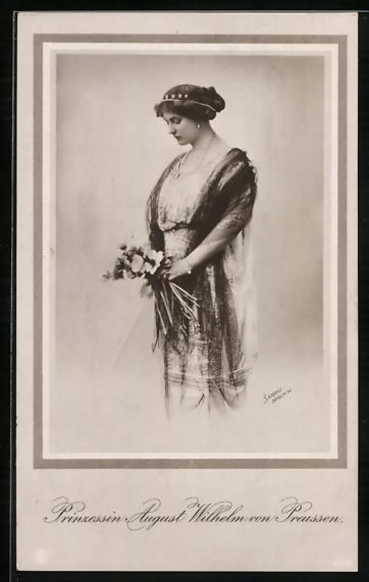 AK Prinzessin August Wilhelm von Preussen mit einem Blumenstrauss