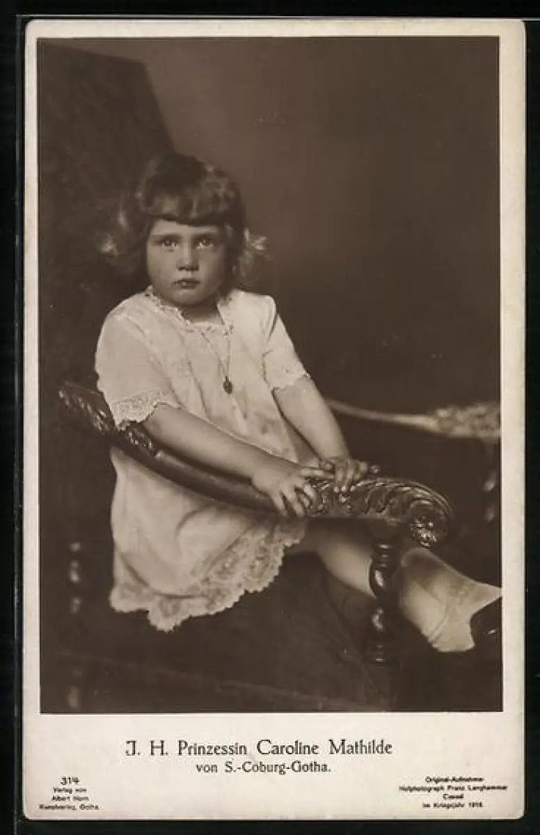AK Prinzessin Caroline Mathilde von Sachsen-Coburg-Gotha sitzt in einem Stuhl