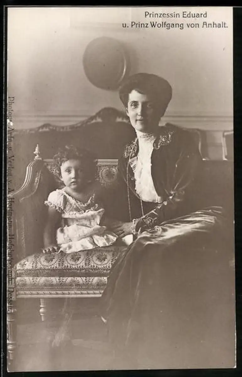 AK Prinzessin Eduard und Prinz Wolfgang von Anhalt auf einem Kanapee