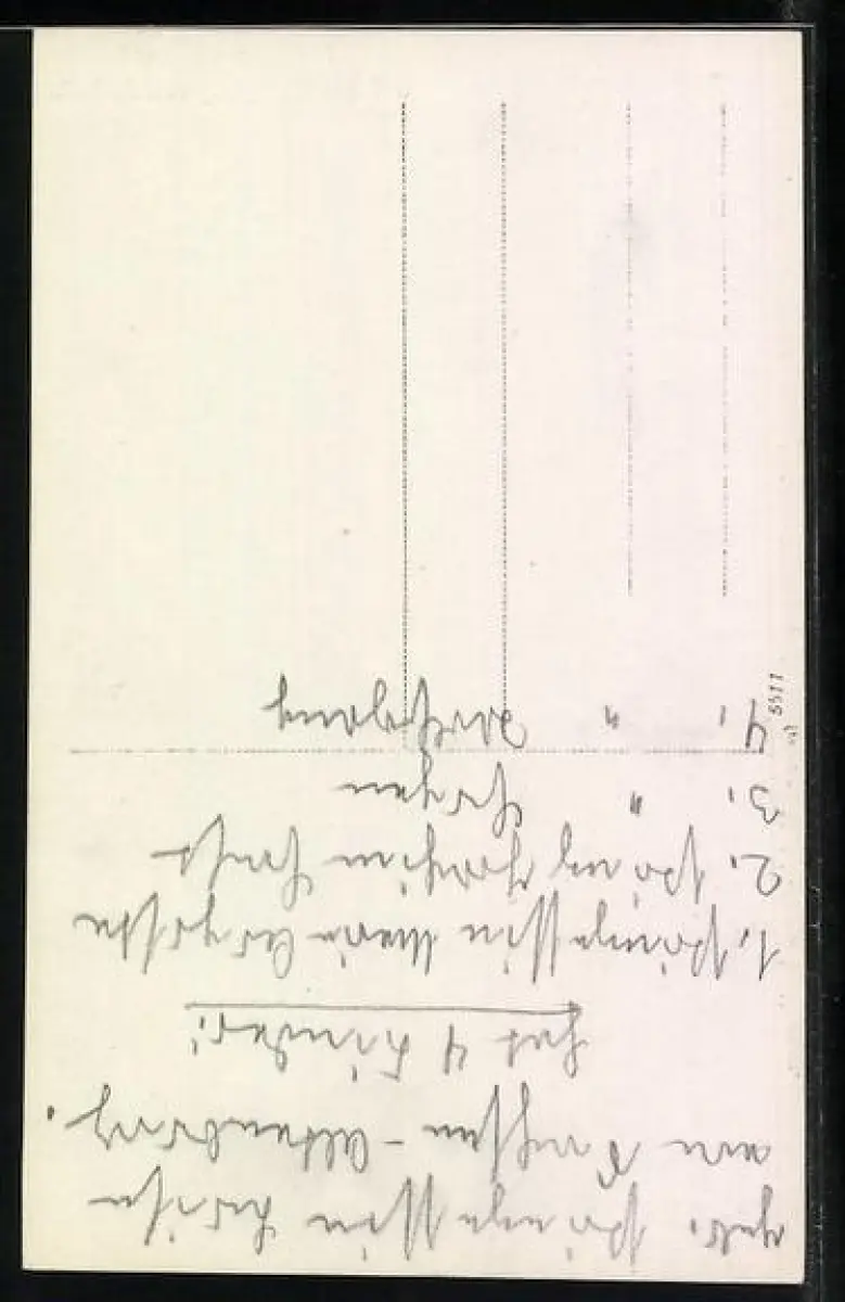 Personenbezogene Daten auf der Rückseite der Karte wurden durch blauen Textmarker unkenntlich gemacht. Die blauen Stellen sind auf die Vorderseite durchgeweicht und wirken sich negativ auf das Postkartenfoto aus