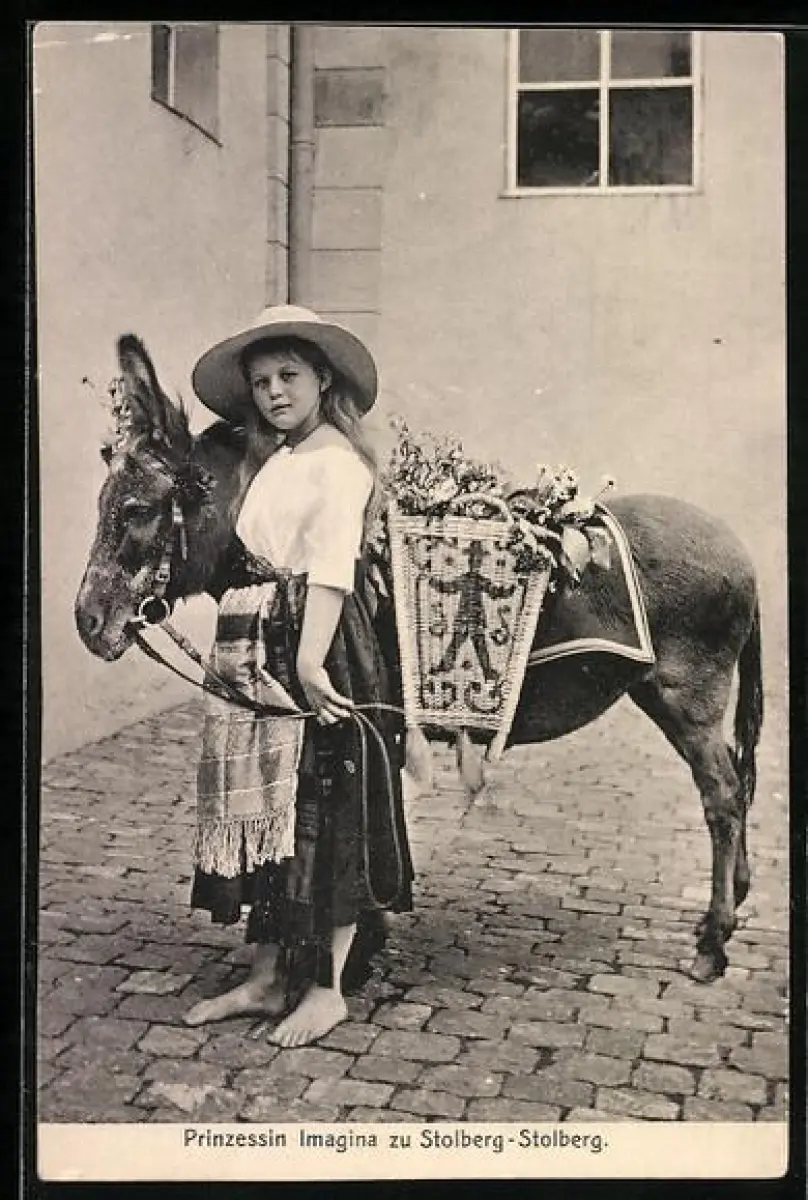 AK Prinzessin Imagina zu Stolberg-Wenigerode mit einem Esel