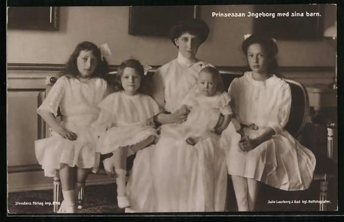 AK Prinzessin Ingeborg von Schweden mit ihren Kindern
