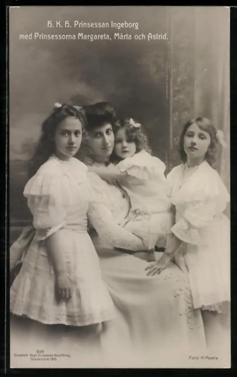 AK Prinzessin Ingeborg von Schweden mit ihren Töchtern Margareta, Märta und Astrid