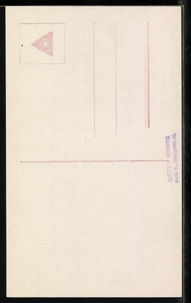 Personenbezogene Daten auf der Rückseite der Karte wurden durch blauen Textmarker unkenntlich gemacht. Die blauen Stellen sind auf die Vorderseite durchgeweicht und wirken sich negativ auf das Postkartenfoto aus
