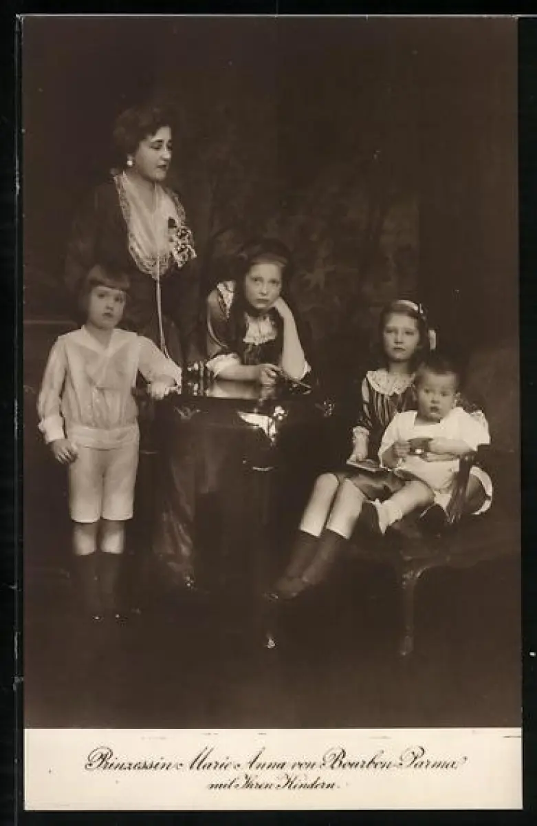 AK Prinzessin Mari Anna von Bourbon Parma mit ihren Kindern