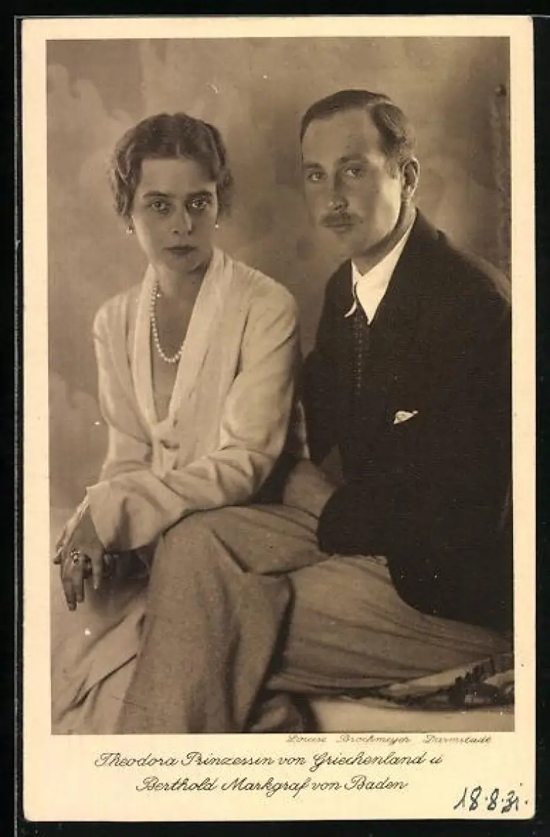 AK Prinzessin Theodora von Griechenland und Markgraf Berthold von Baden