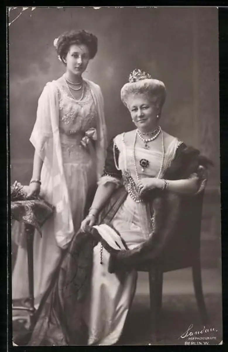 AK Prinzessin Viktoria Luise und Kaiserin Auguste Victoria von Preussen am Tisch