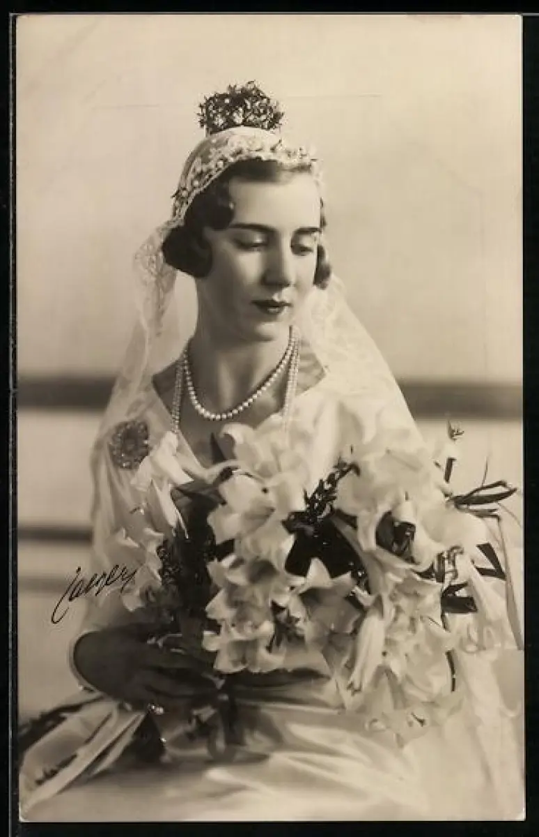 AK Prinzessin von Schweden als Braut mit Hochzeitsstrauss