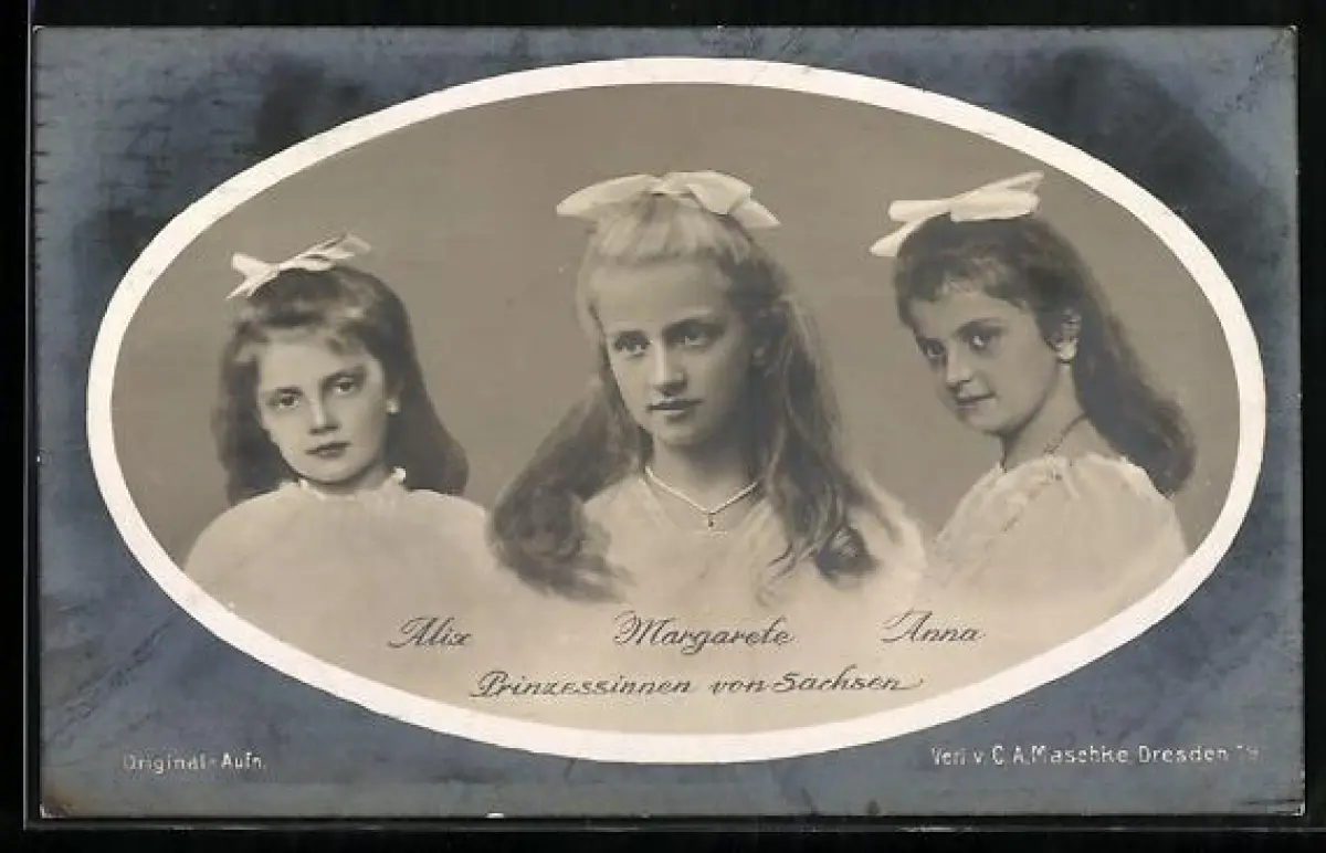 AK Prinzessinnen Alix, Margarete und Anna von Sachsen im Portrait