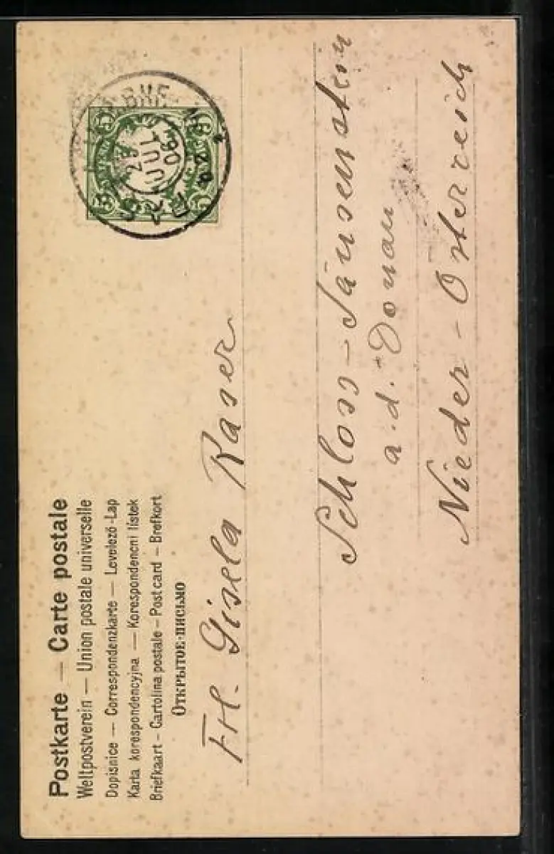 gelaufen 1906, Eckknick re. unten, guter Zustand