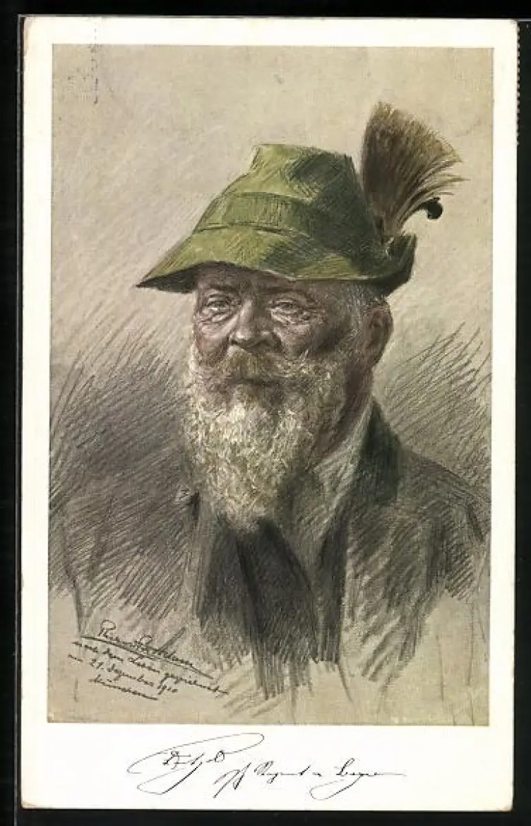 AK Prinzregent Luitpold von Bayern mit Vollbart und Jägerhut, Brustbild