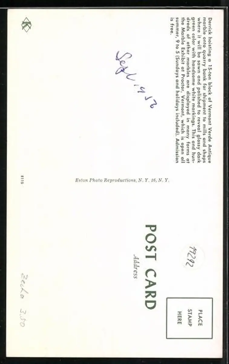 AK Proctor, VT, Derrick hoisting a block of Vermont Verde Antique marble