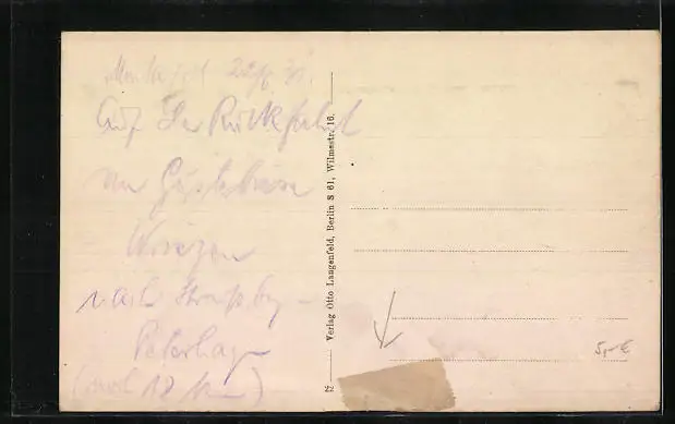 alte Ansichtskarte, ungelaufen, Rückseite beschrieben, Bugspur unten, hinten geklebt