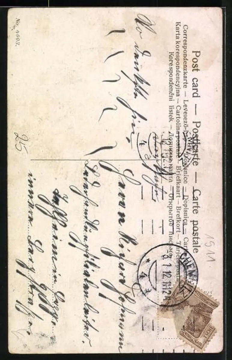 alte Ansichtskarte, gelaufen 1912, Eckknick li. unten, guter Zustand