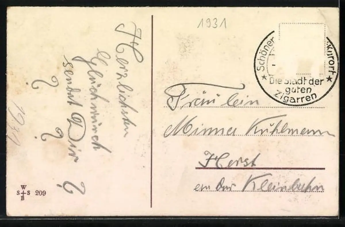 alte Ansichtskarte, gelaufen, Briefmarke entfernt, rückseitig Oberflächenschaden, guter Zustand