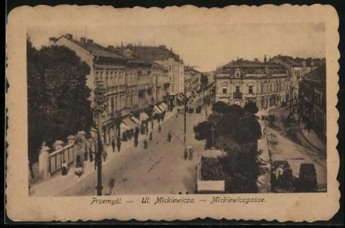 AK Przemysl, Mickiewitzgasse aus der Vogelschau