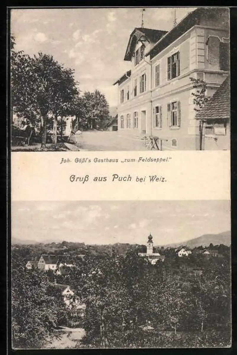AK Puch bei Weiz, Joh. Gössl`s Gasthaus zum Feldseppel, Ortsansicht