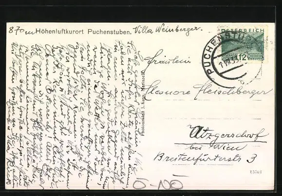 AK Puchenstuben, Ortsansicht mit Villa Weinberger