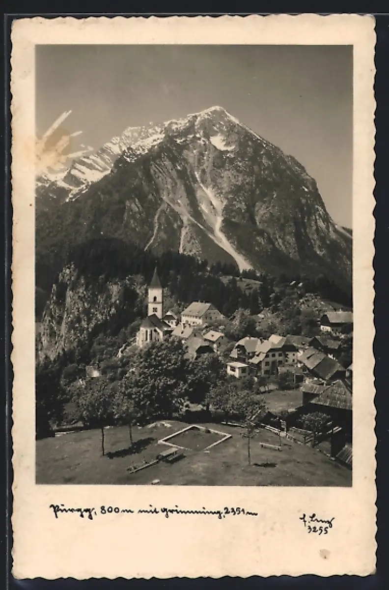 AK Pürgg, Ortsansicht aus der Vogelschau mit Grimming