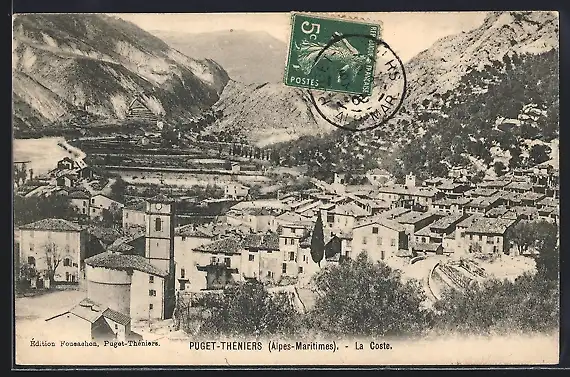 AK Puget-Théniers, La Coste et vue sur le village et les montagnes environnantes