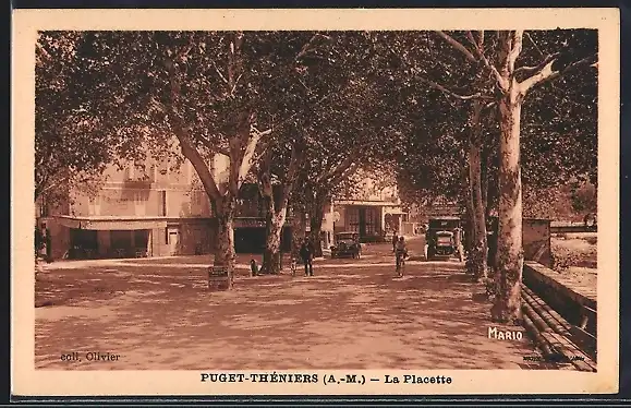 AK Puget-Théniers, La Placette avec arbres et bâtiments environnants