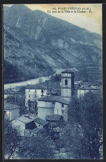 AK Puget-Théniers, Un coin de la Ville et le Clocher