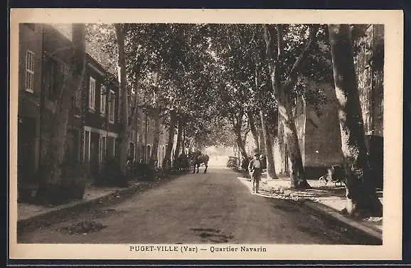AK Puget-Ville, Quartier Navarin avec allée ombragée et passants