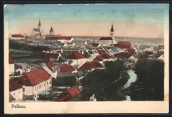 AK Pulkau, Ortsansicht mit zwei Kirchen