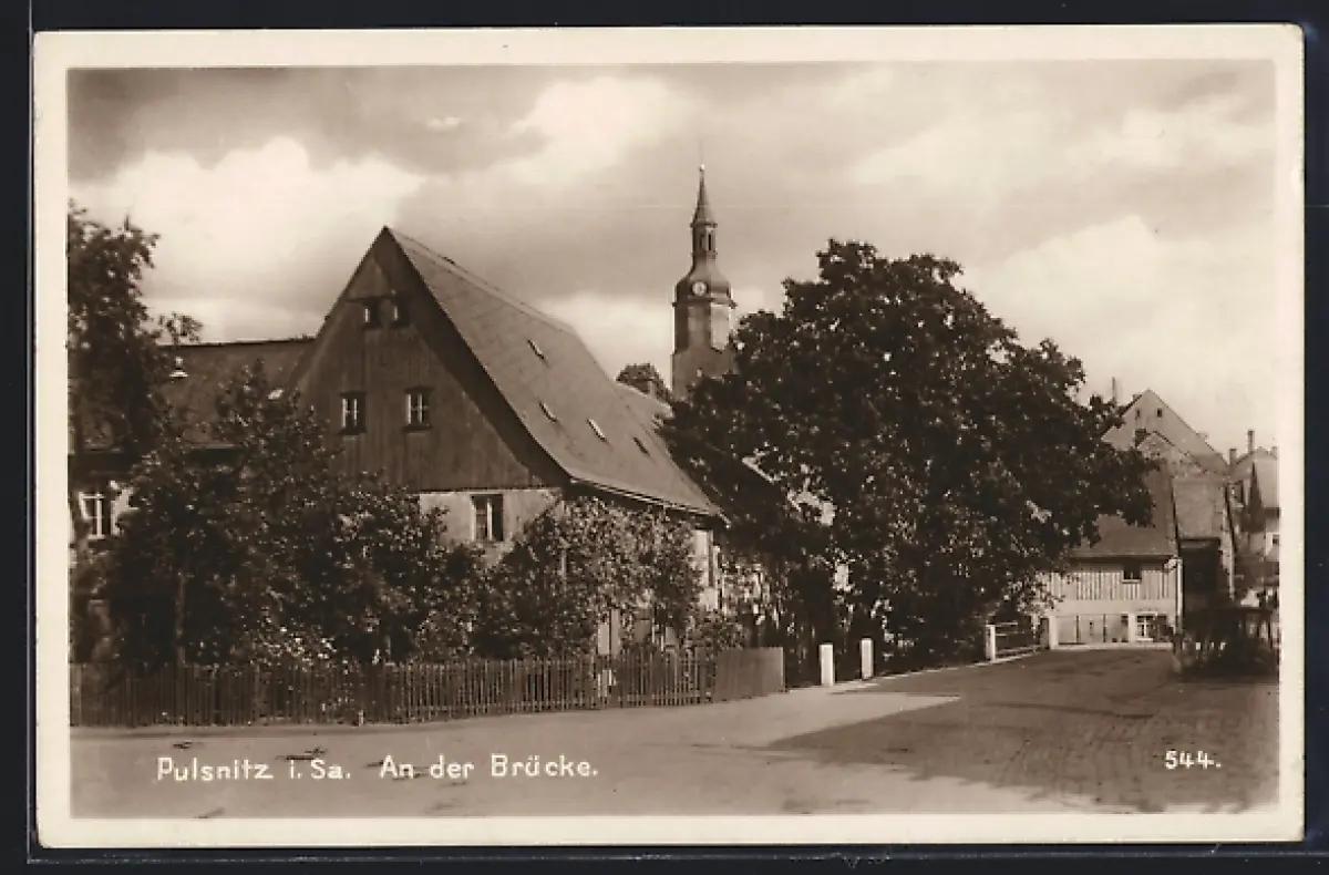 AK Pulsnitz i. Sa., Strassenpartie an der Brücke