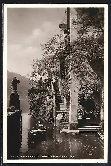 AK Punta Balbianello /Lago di Como, Ruderboot am Anleger