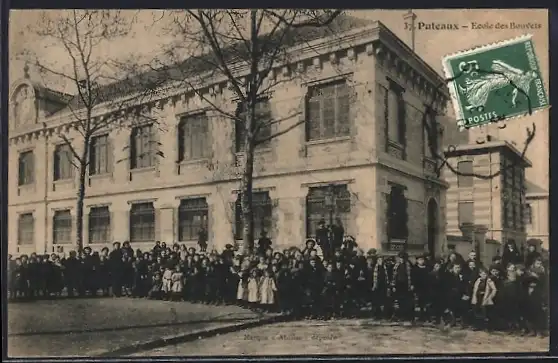 AK Puteaux, École des Bouvets avec des élèves posant devant le bâtiment