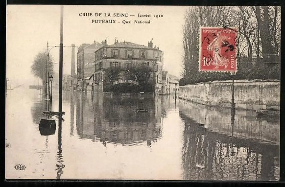 AK Puteaux, Inondation au Quai National lors de la crue de la Seine en janvier 1910