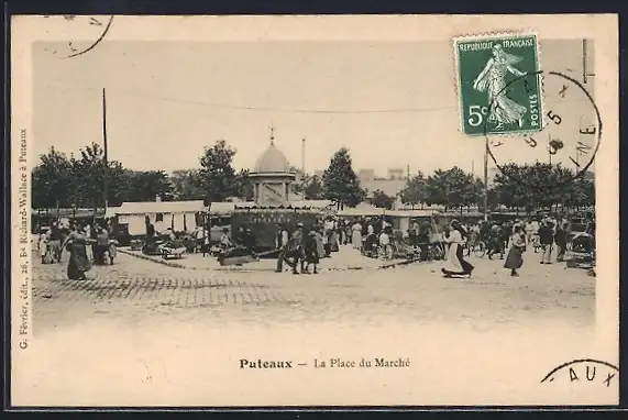 AK Puteaux, La Place du Marché animée avec des étals et des passants
