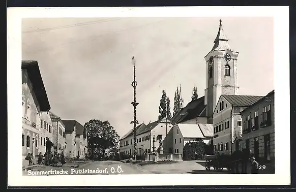 AK Putzleinsdorf /O. Ö., Strassenpartie mit Kirche